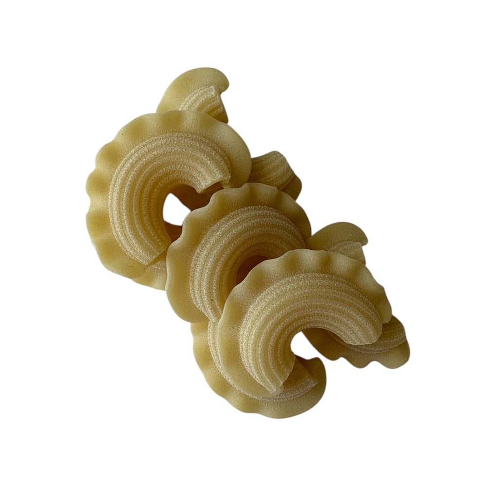 Short, curved, tubular shaped home style pasta with Italian semolina and white flour.